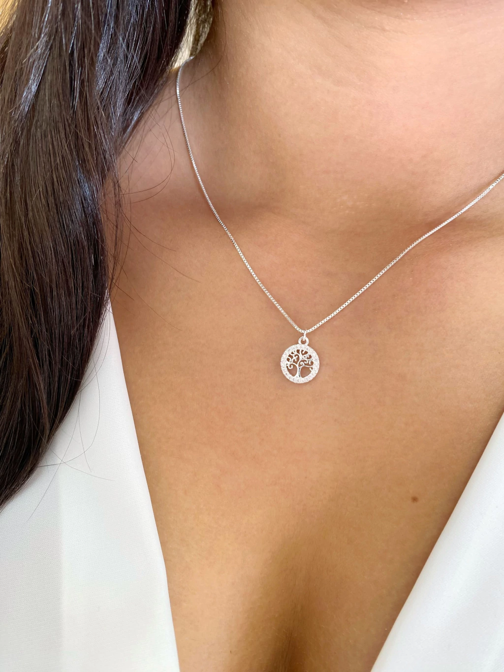 Colar Árvore da Vida Cravejada - Banhado a Ródio Branco