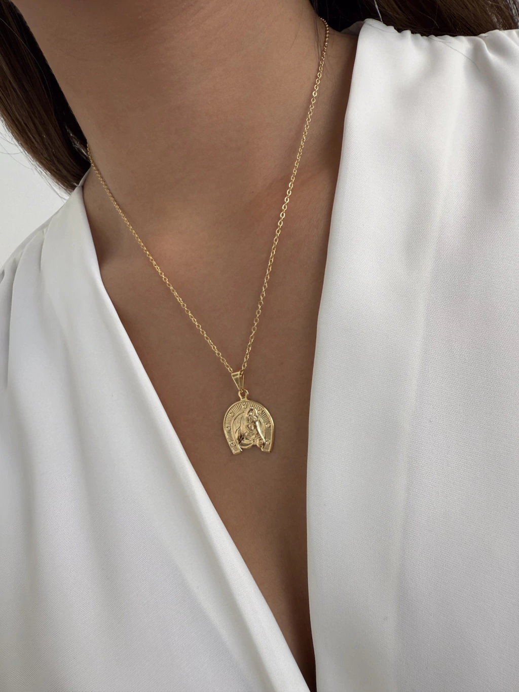 Uma peça que carrega força, elegância e um toque de sorte. O Colar Cavalo Ferradura traz um pingente detalhado que une dois símbolos poderosos: o cavalo, sinônimo de liberdade e bravura, e a ferradura, tradicionalmente associada à sorte e proteção. Perfeito para quem tem espírito livre e aprecia acessórios com significado.