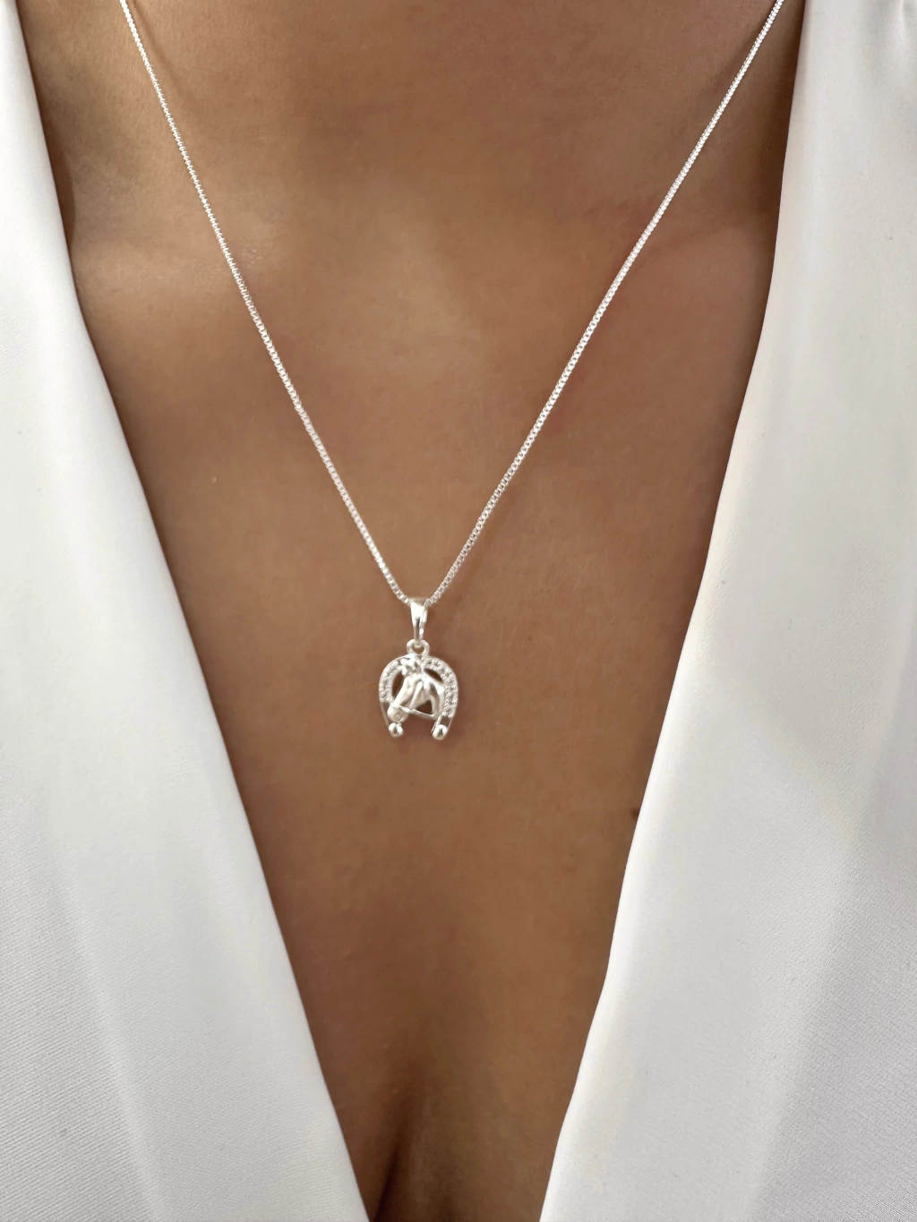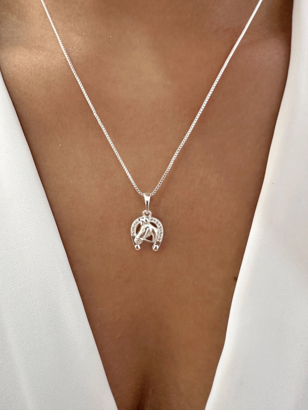 Colar Cavalo Ferradura Cravejada - Banhado a Prata