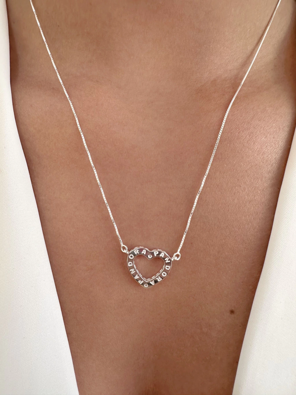 Um clássico repaginado, o colar coração Pandora em Prata 925 é a definição de elegância minimalista. Com design delicado e atemporal, ele traz aquele charme sofisticado que combina tanto com o dia a dia quanto com ocasiões especiais. A peça é versátil, romântica e perfeita para quem gosta de joias com significado e estilo duradouro.