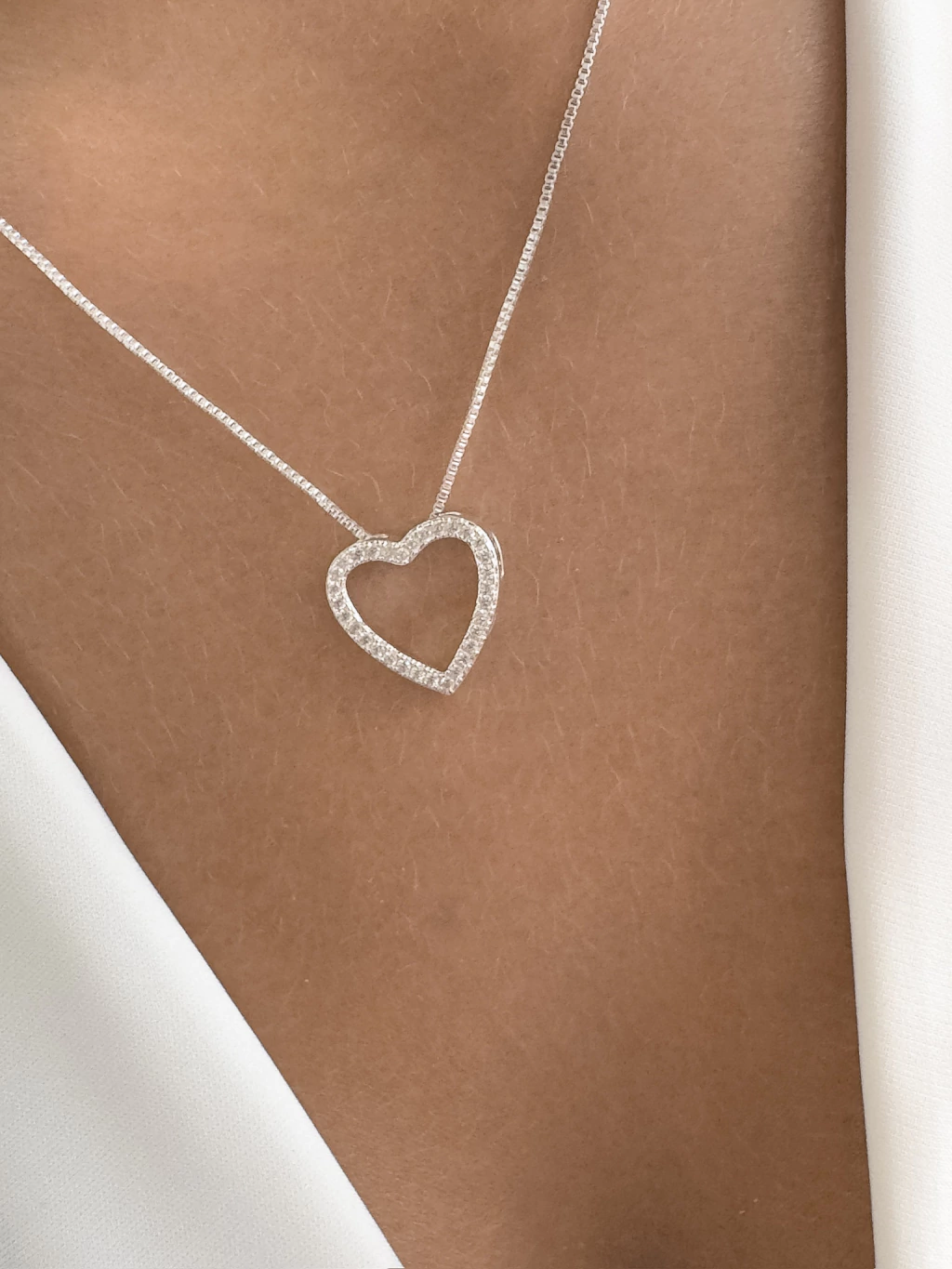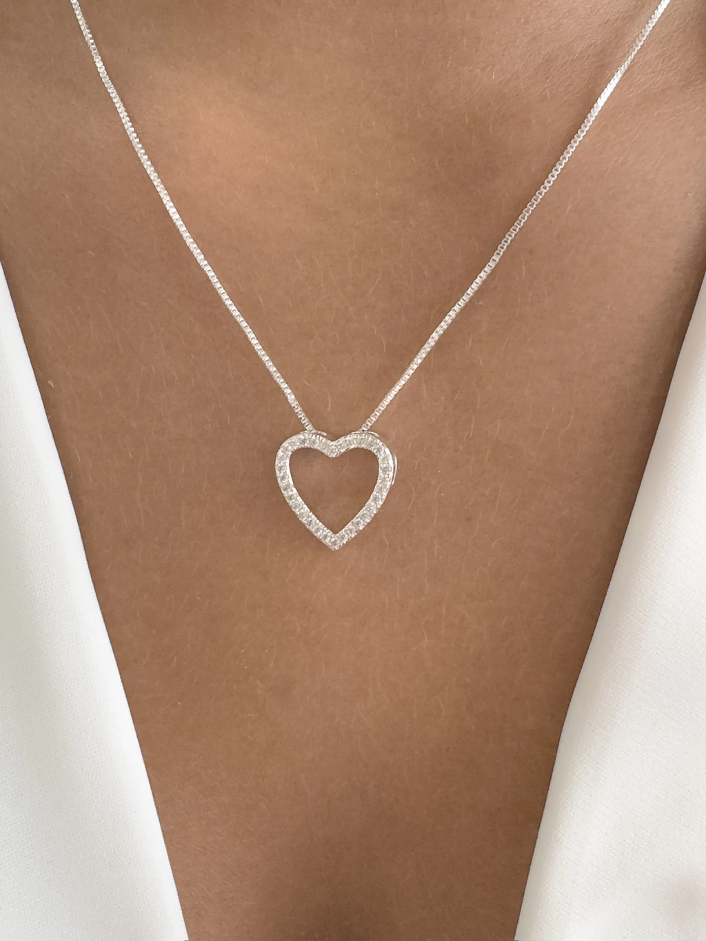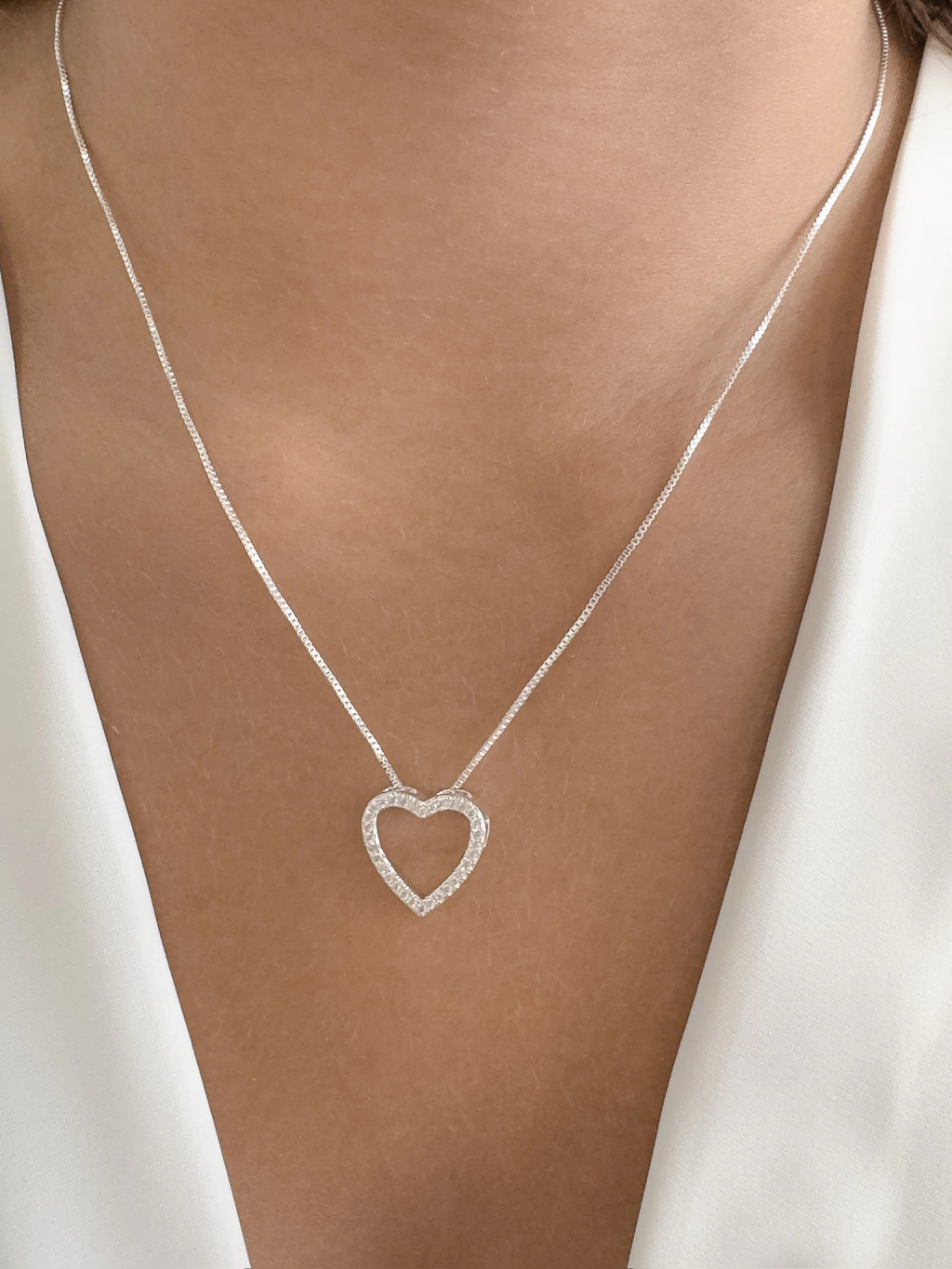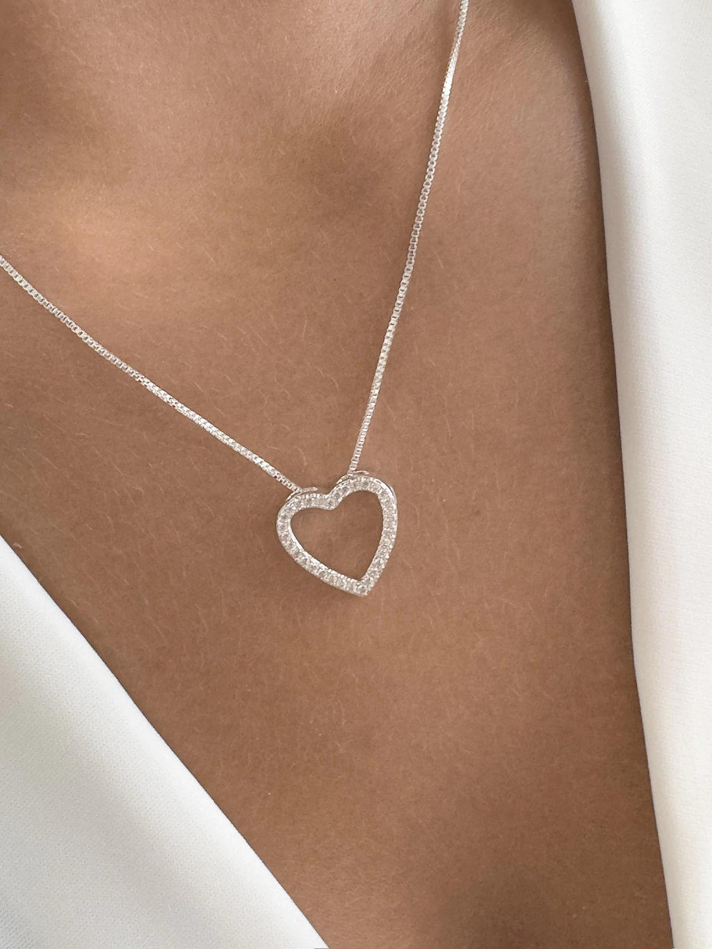 Colar Coração Vazado com Zircônias - Banhado a Prata