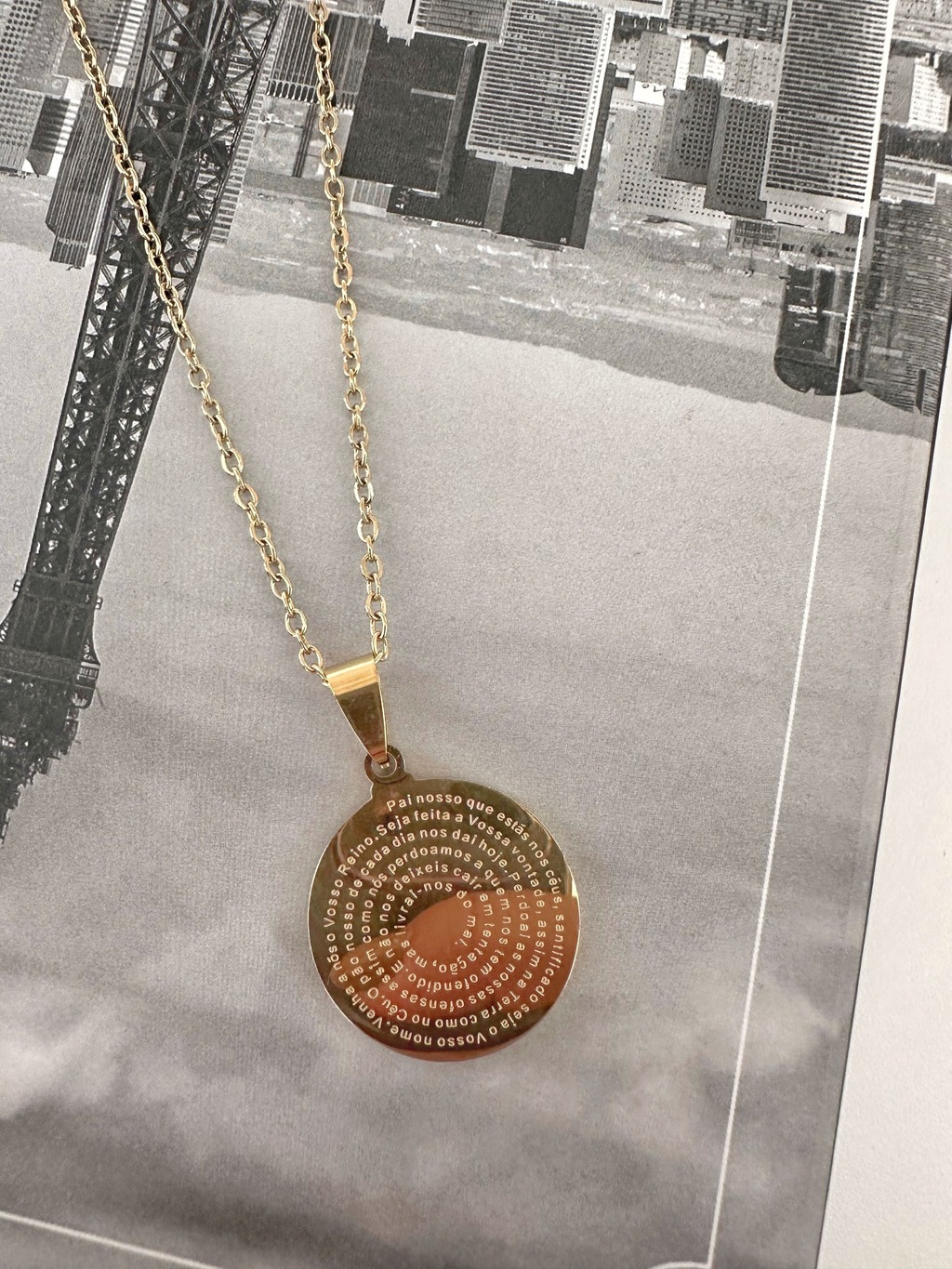 Colar Elos Pai Nosso - 45cm - Aço Dourado