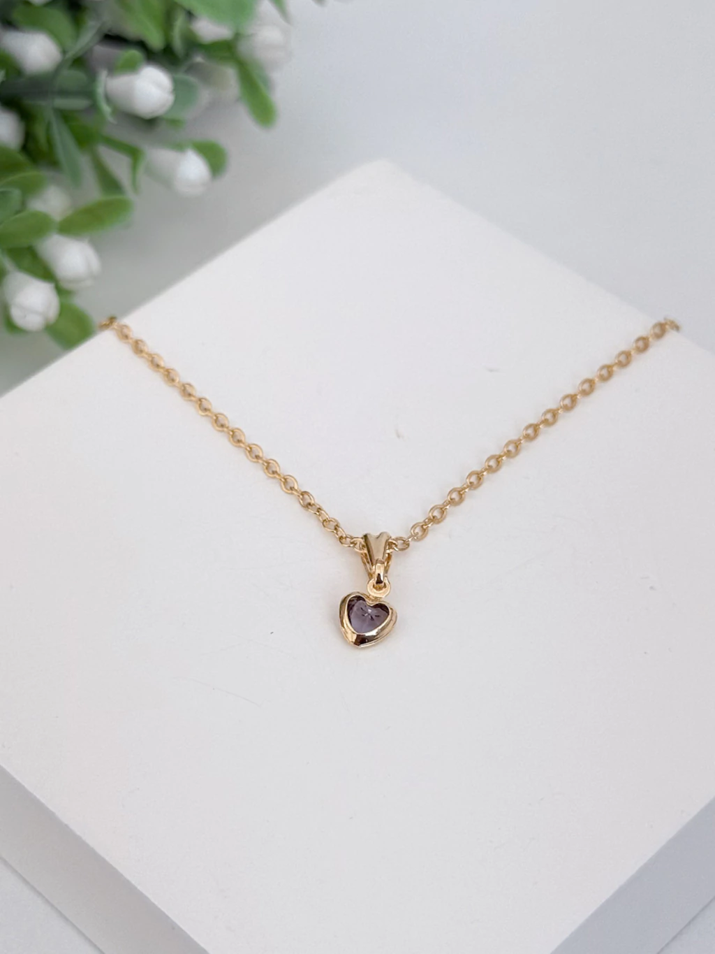 Colar Infantil Coração Roxo - Banhado a Ouro