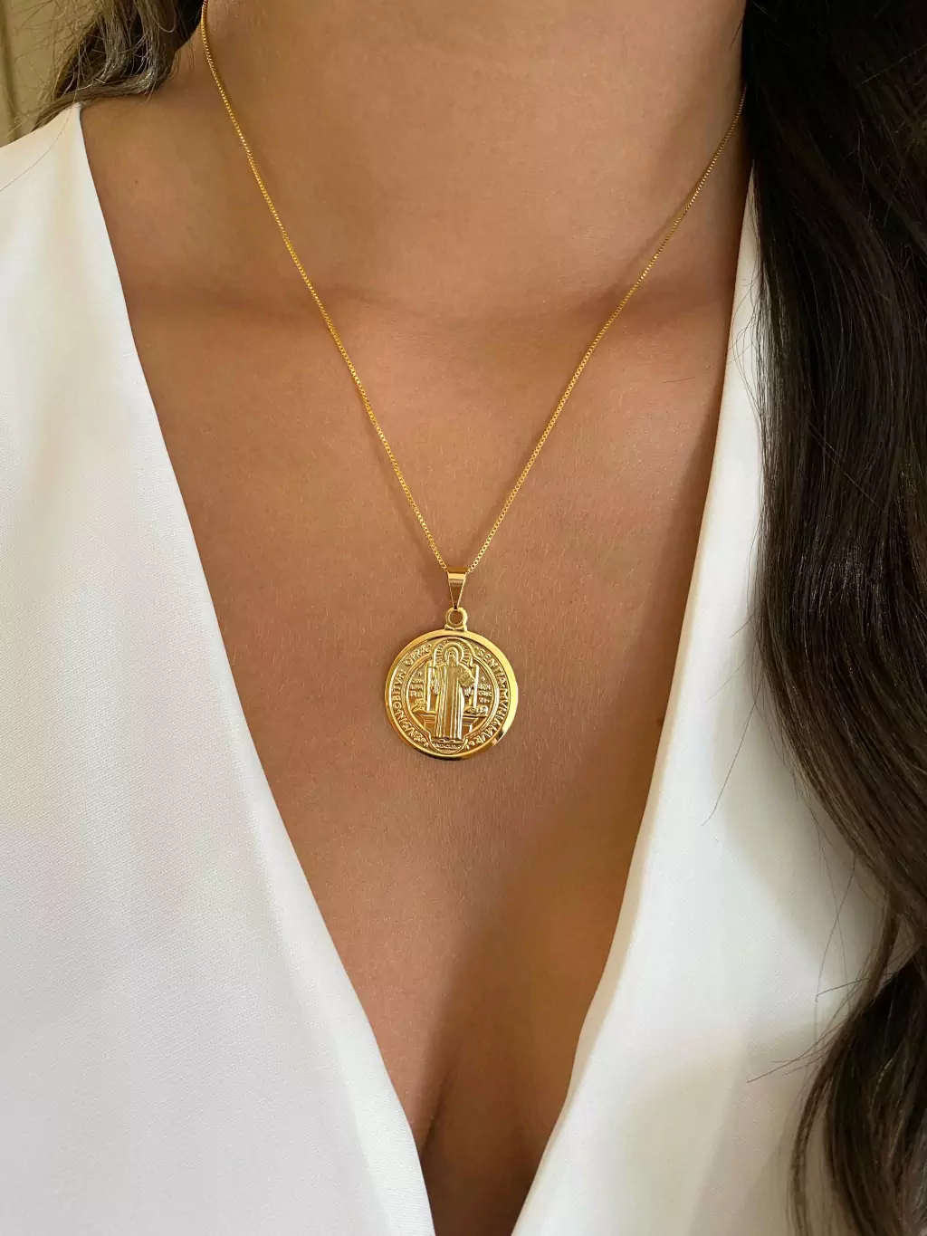 As medalhas de São Bento são utilizadas há muito tempo como amuleto de proteção. Acredita-se que a medalha de São Bento ajuda a se livrar de calúnias, mau olhado e concede intuição para reconhecer a inveja. É o acessório perfeito para demonstrar sua devoção com beleza e delicadeza.