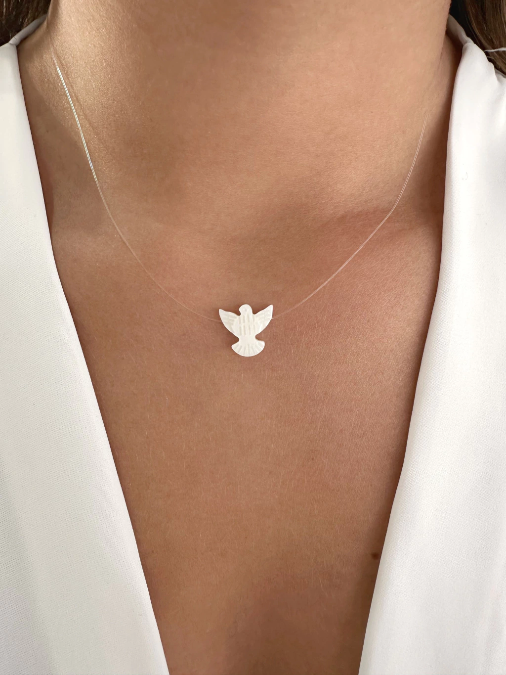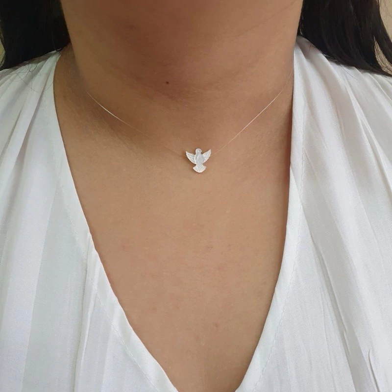 Delicadeza e espiritualidade em um acessório encantador! O Colar Nylon Espírito Santo traz um pingente de madrepérola com acabamento sofisticado, simbolizando proteção e paz. A transparência do fio de nylon cria um efeito flutuante, perfeito para um visual minimalista e elegante.