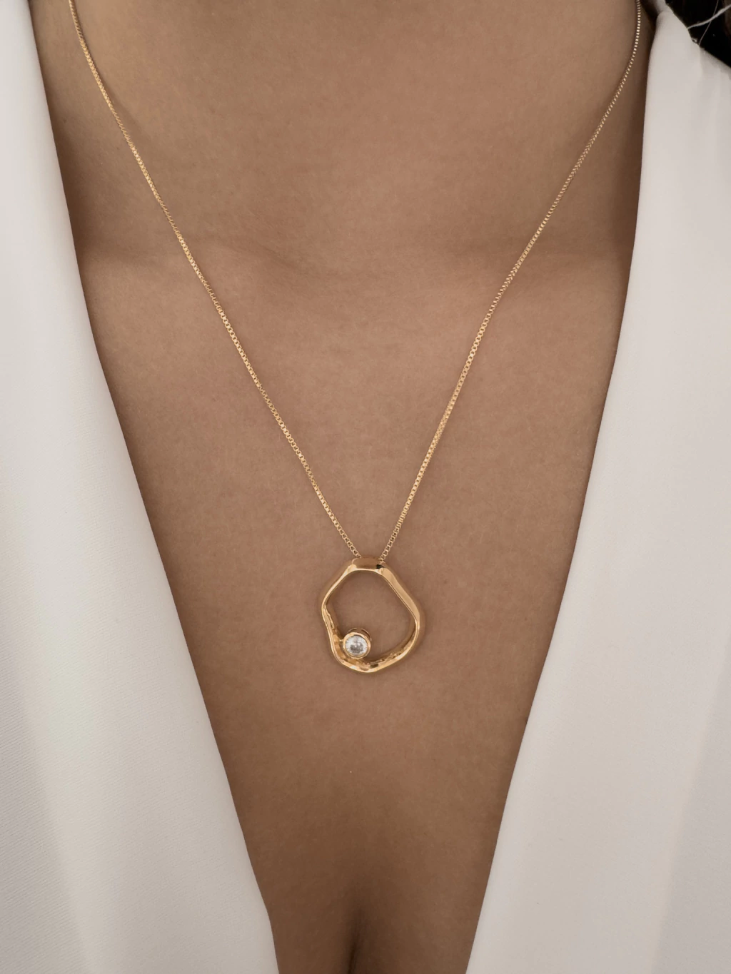 Colar Pingente Orgânico com Ponto de Luz - Banhado a Ouro