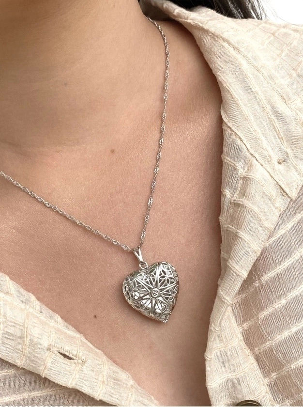Colar Relicário Coração Detalhado - Guarde Seus Momentos no Coração: