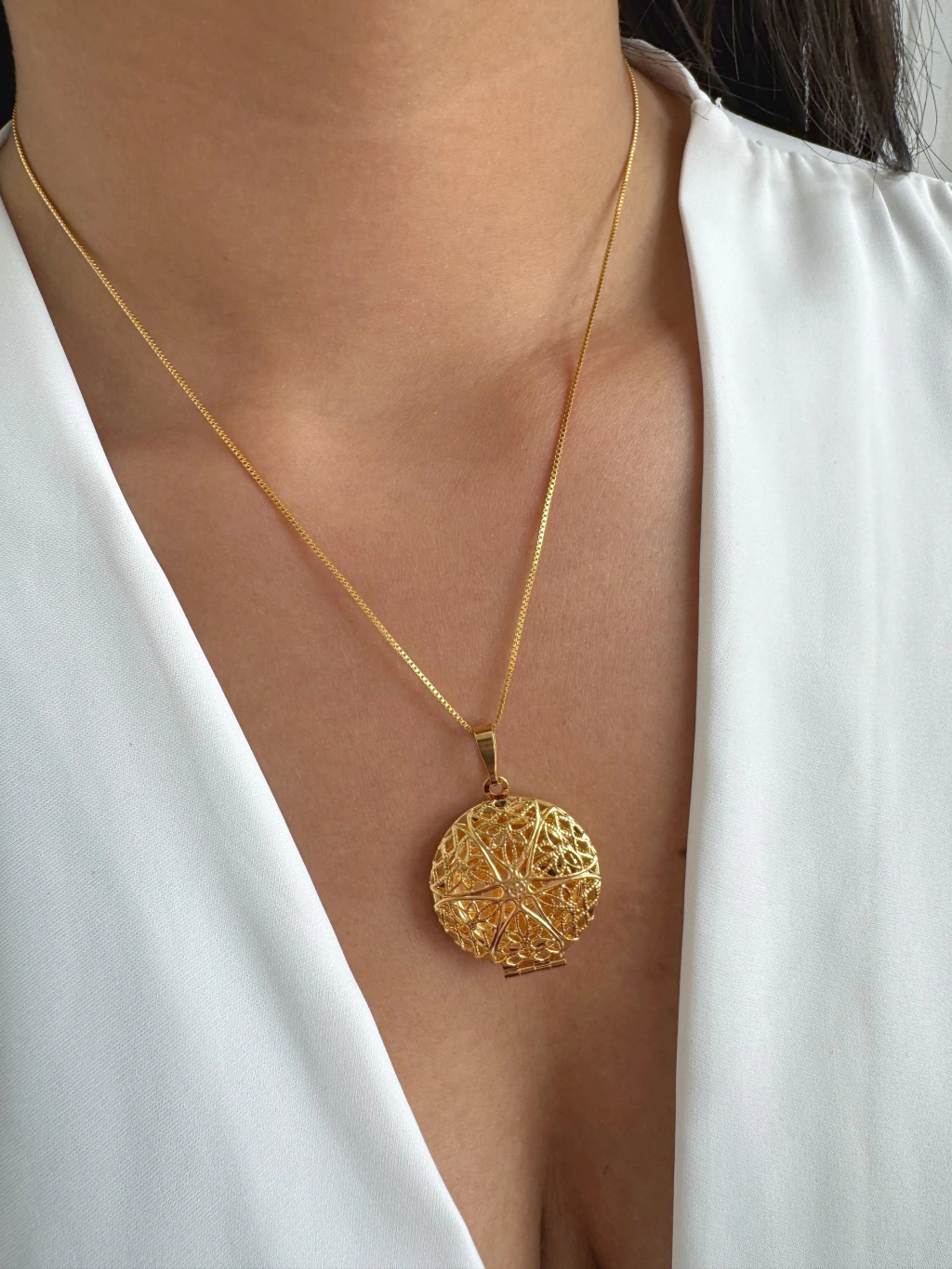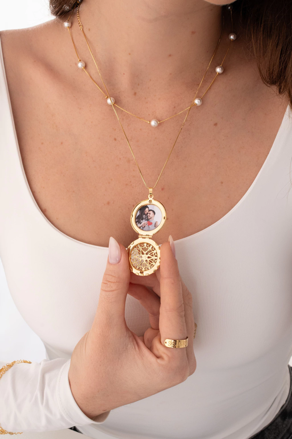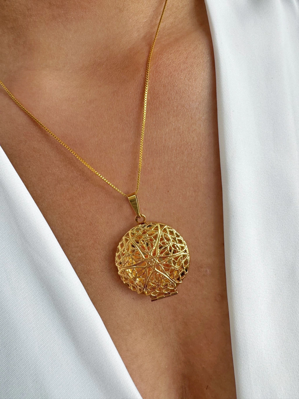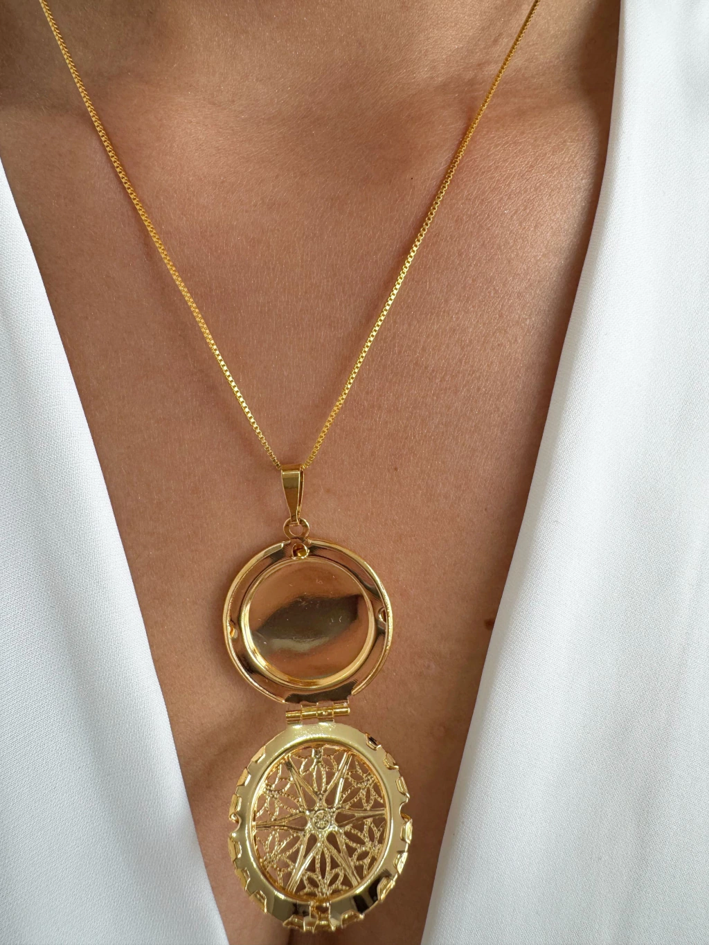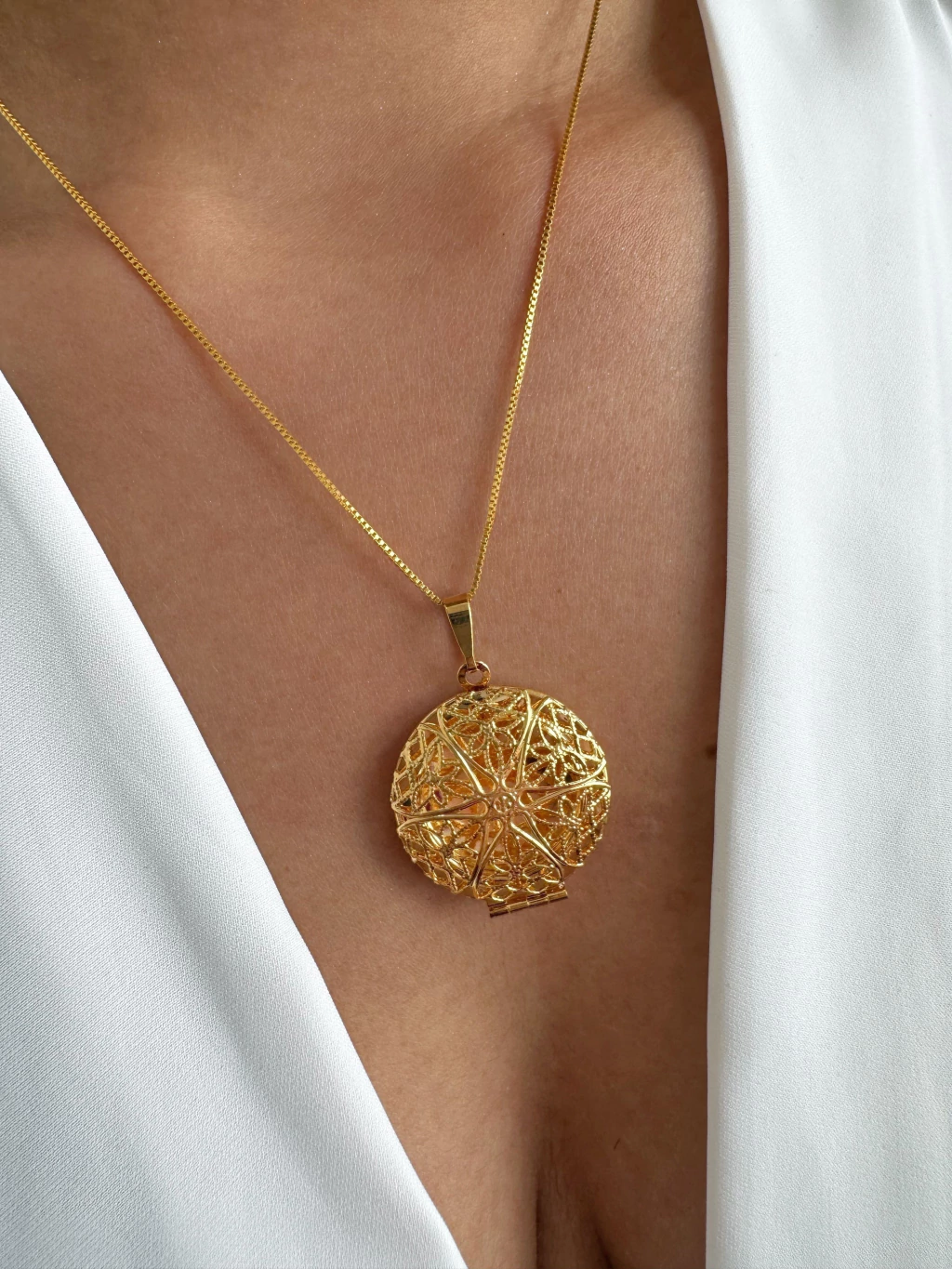 Colar Relicário Redondo Detalhado - Guarde Seus Momentos no Coração: