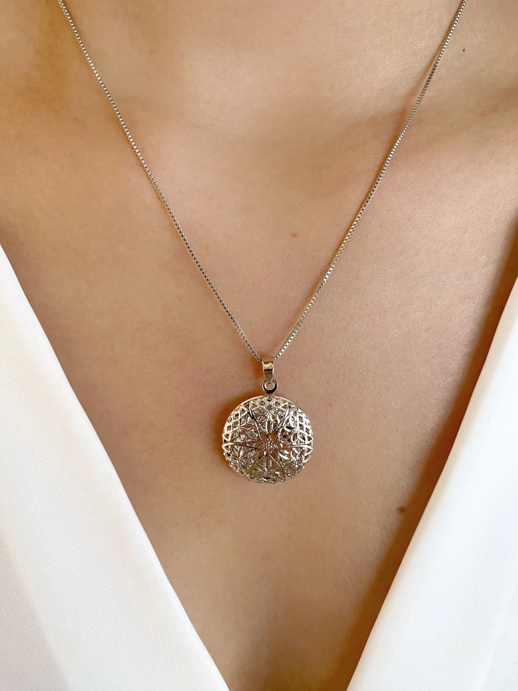 Colar Relicário Redondo Detalhado - Guarde Seus Momentos no Coração: