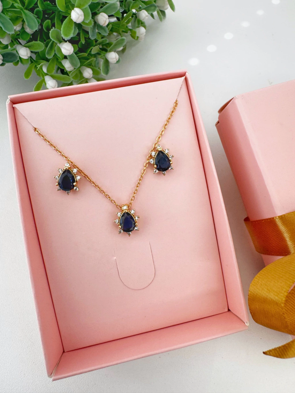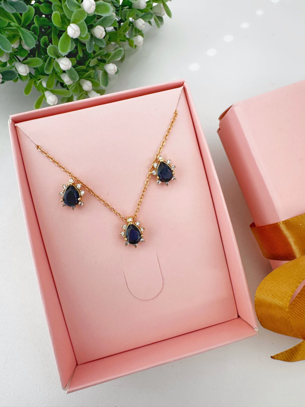 Conjunto Gota Azul com Microzircônias - Banhado a Ouro