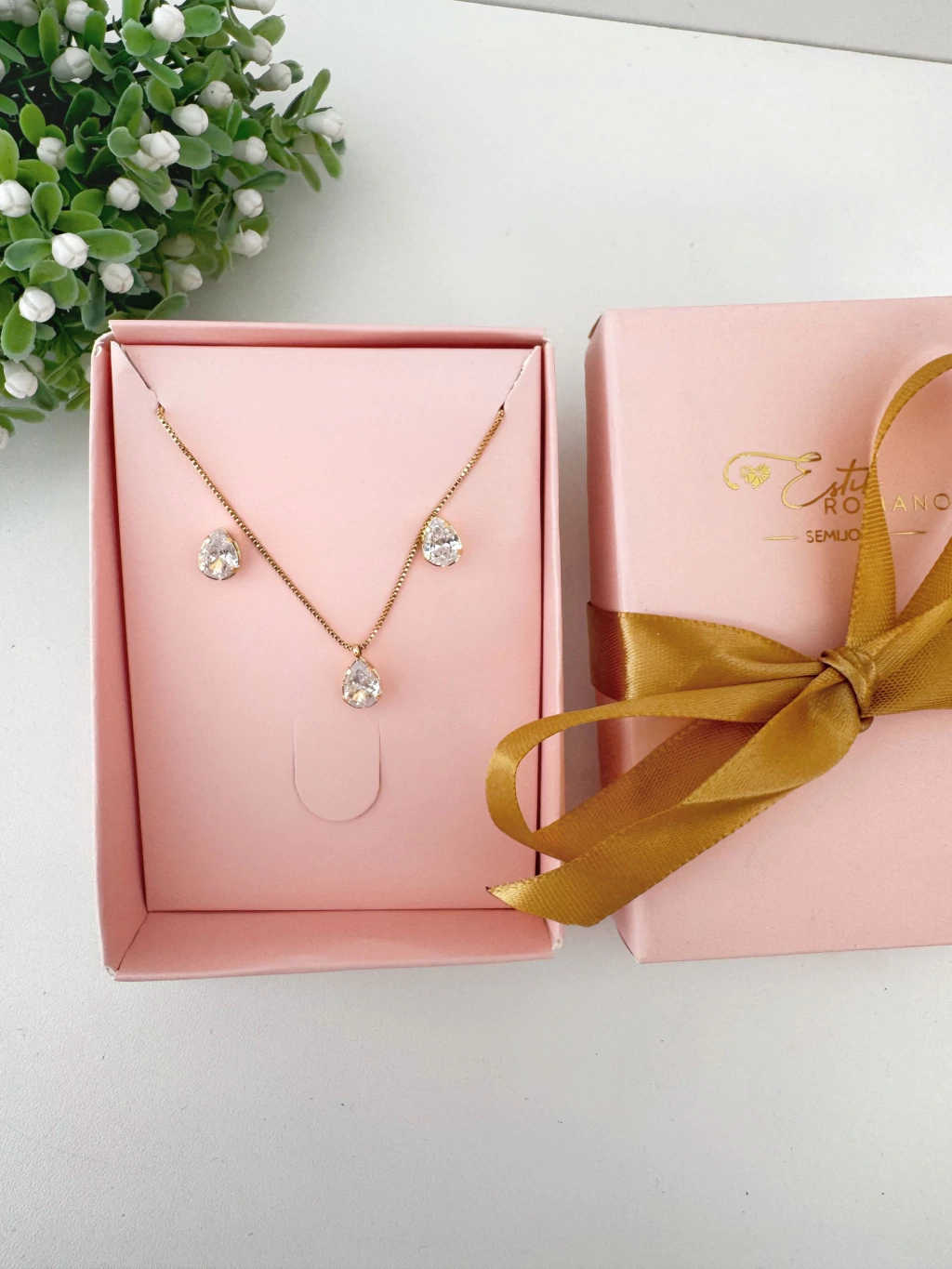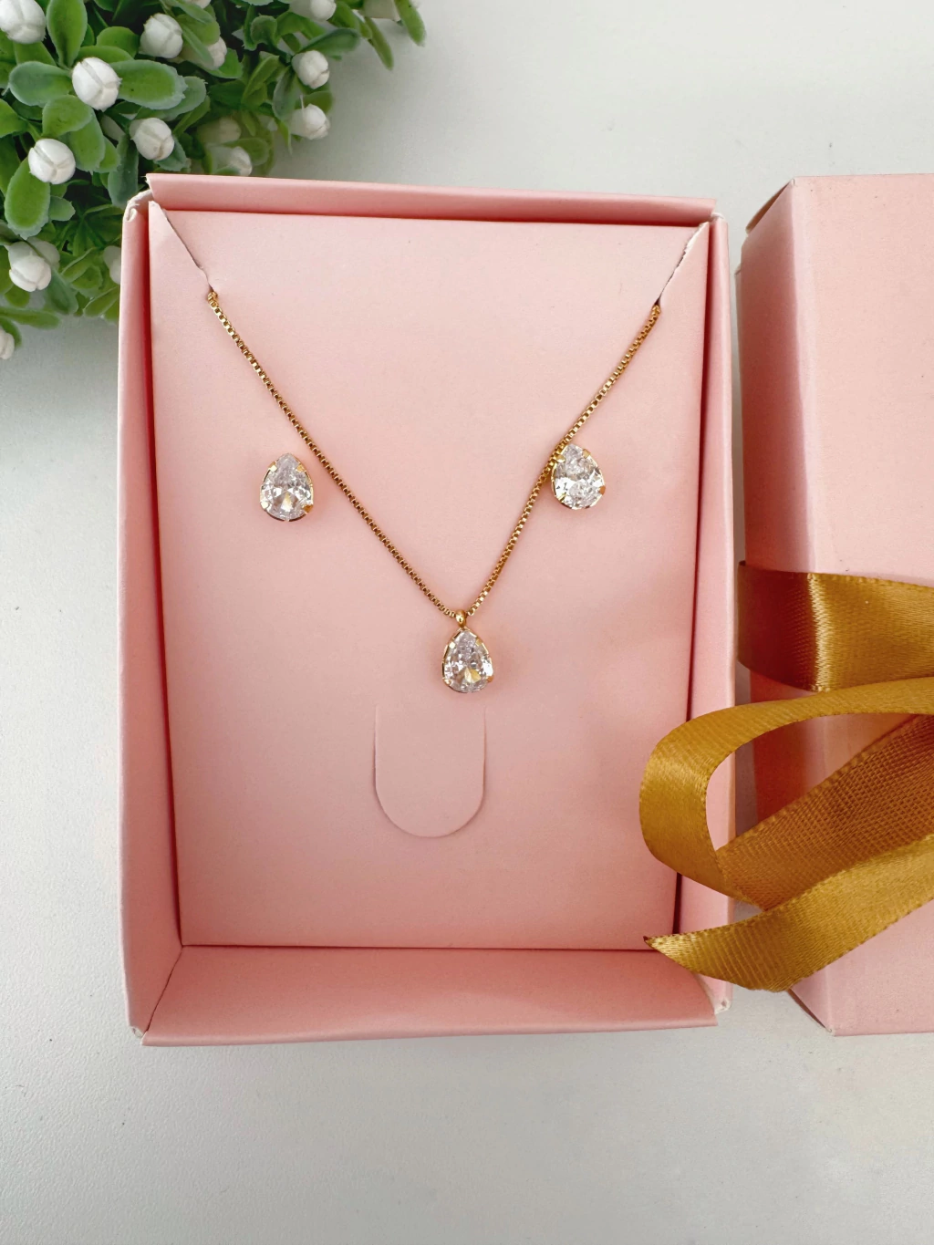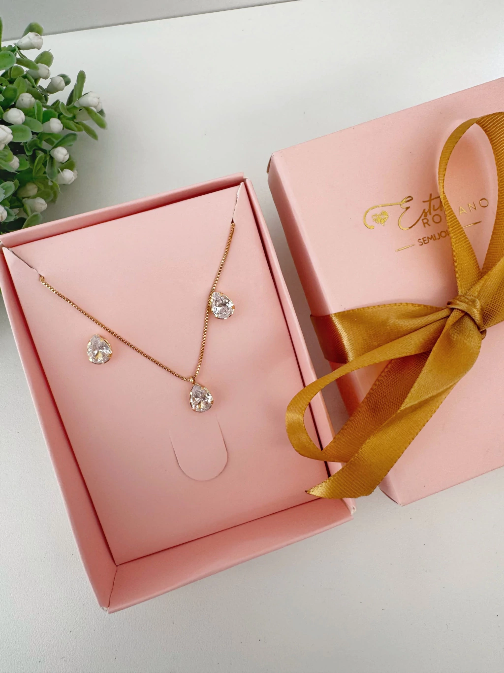 O Conjunto Gota Cristal 8mm é a escolha certa para quem busca delicadeza com um toque de brilho clássico. A pedra em formato de gota realça a luz de forma elegante, tornando esse conjunto perfeito tanto para o dia a dia quanto para ocasiões especiais. Seu design atemporal garante versatilidade e sofisticação, valorizando qualquer produção com um detalhe sutil e refinado.