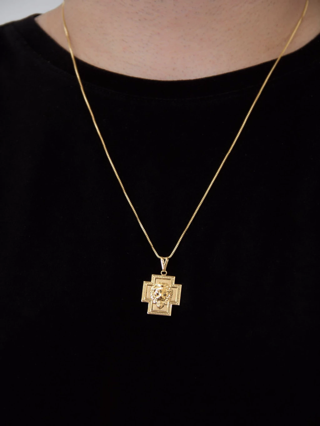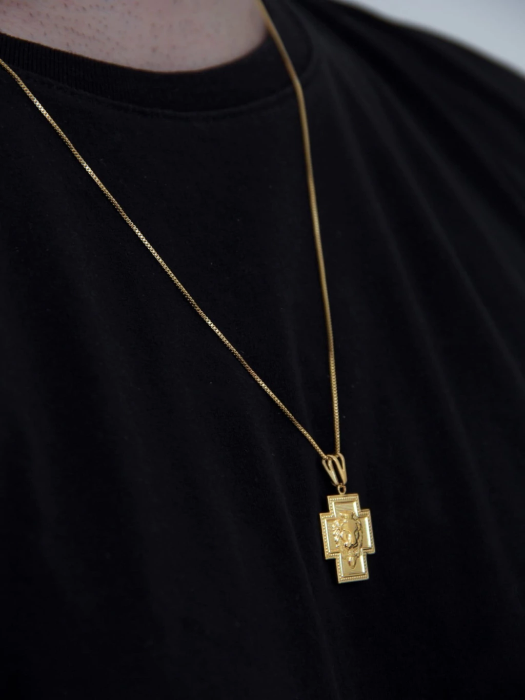 Uma peça que representa poder, proteção e fé, perfeita para homens que buscam um acessório sofisticado e marcante.