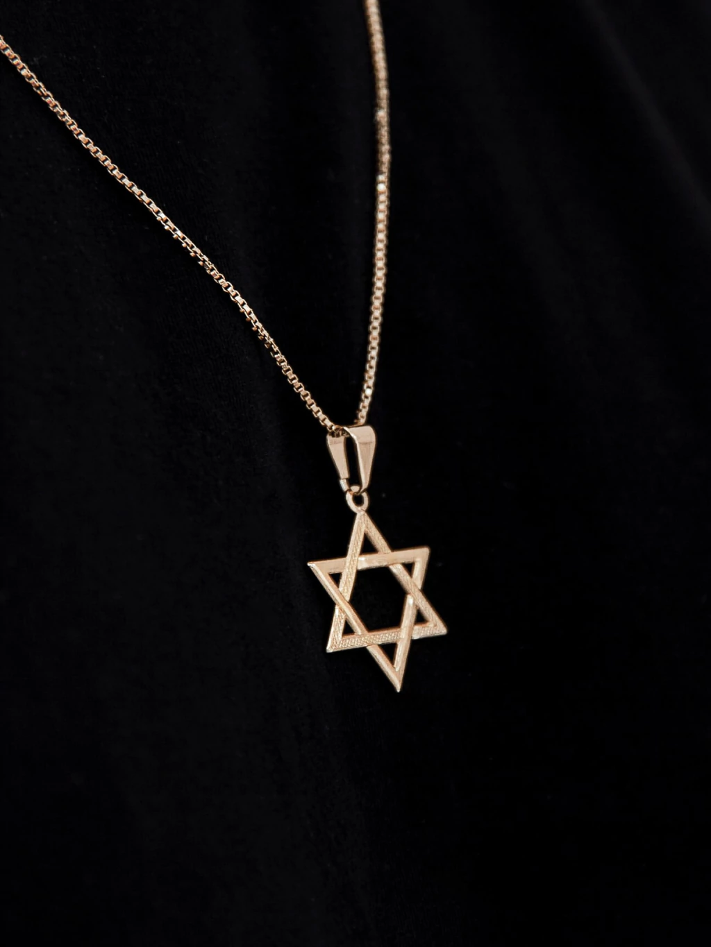 A Corrente Veneziana com Pingente Estrela de Davi Banhada a Ouro é um acessório marcante para homens que valorizam estilo e significado. A Estrela de Davi, símbolo de proteção e conexão espiritual, é representada com um design sofisticado e acabamento detalhado, ideal para expressar fé e identidade com elegância.