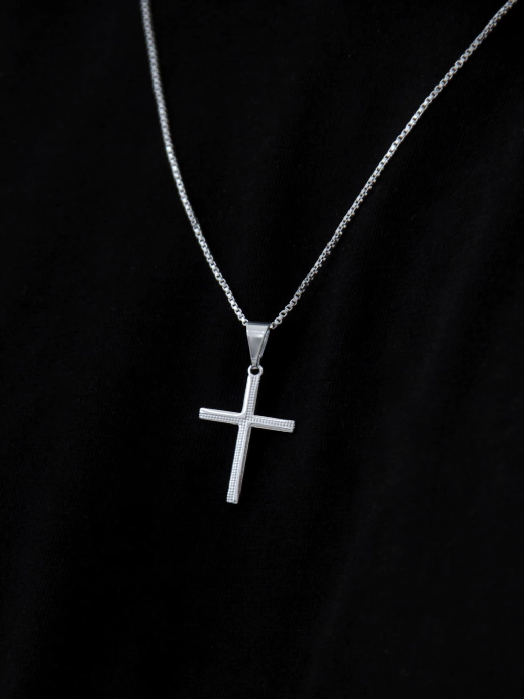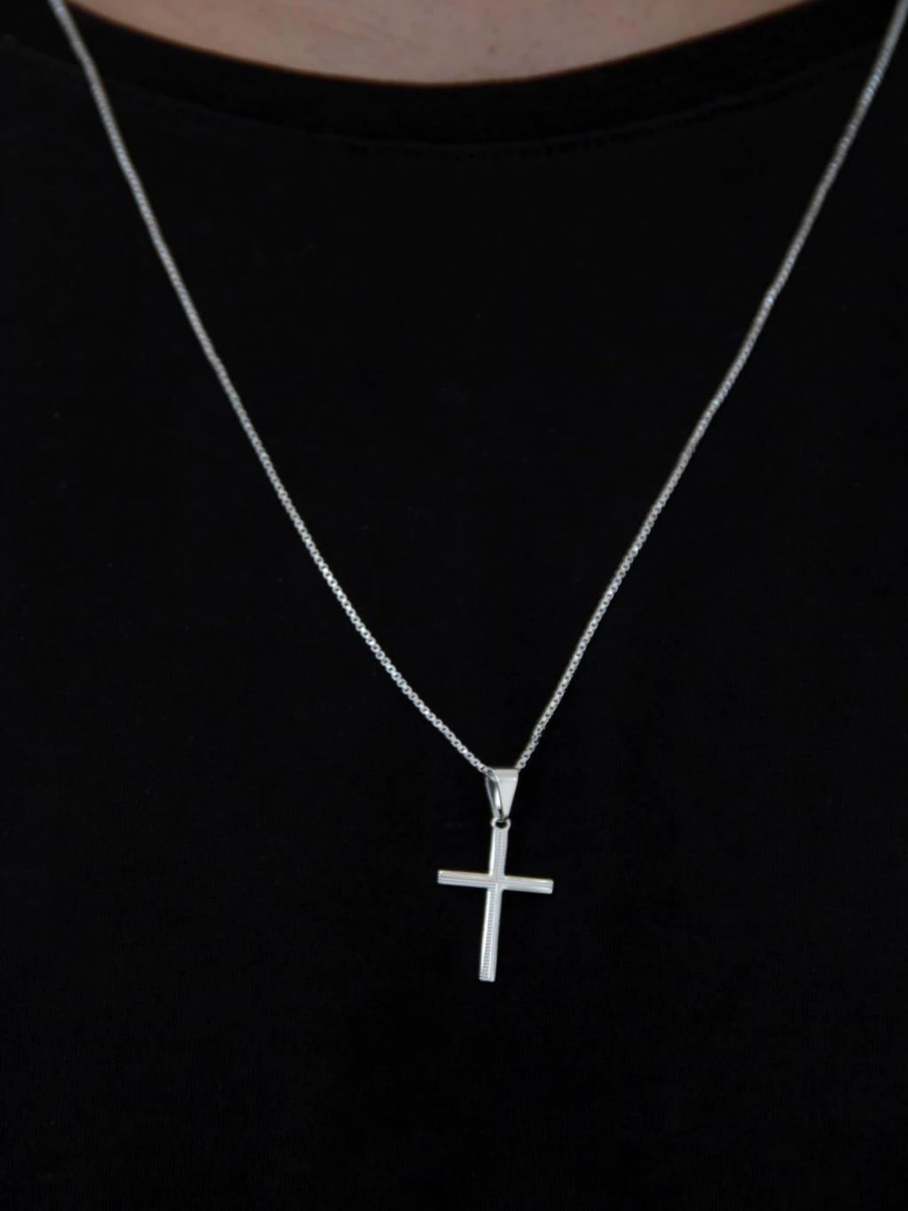 O pingente de 2.5cm x 1.6cm traz uma cruz com detalhes trabalhados, agregando personalidade e elegância ao acessório. O banho de prata de alta qualidade garante brilho duradouro e resistência ao uso contínuo.
