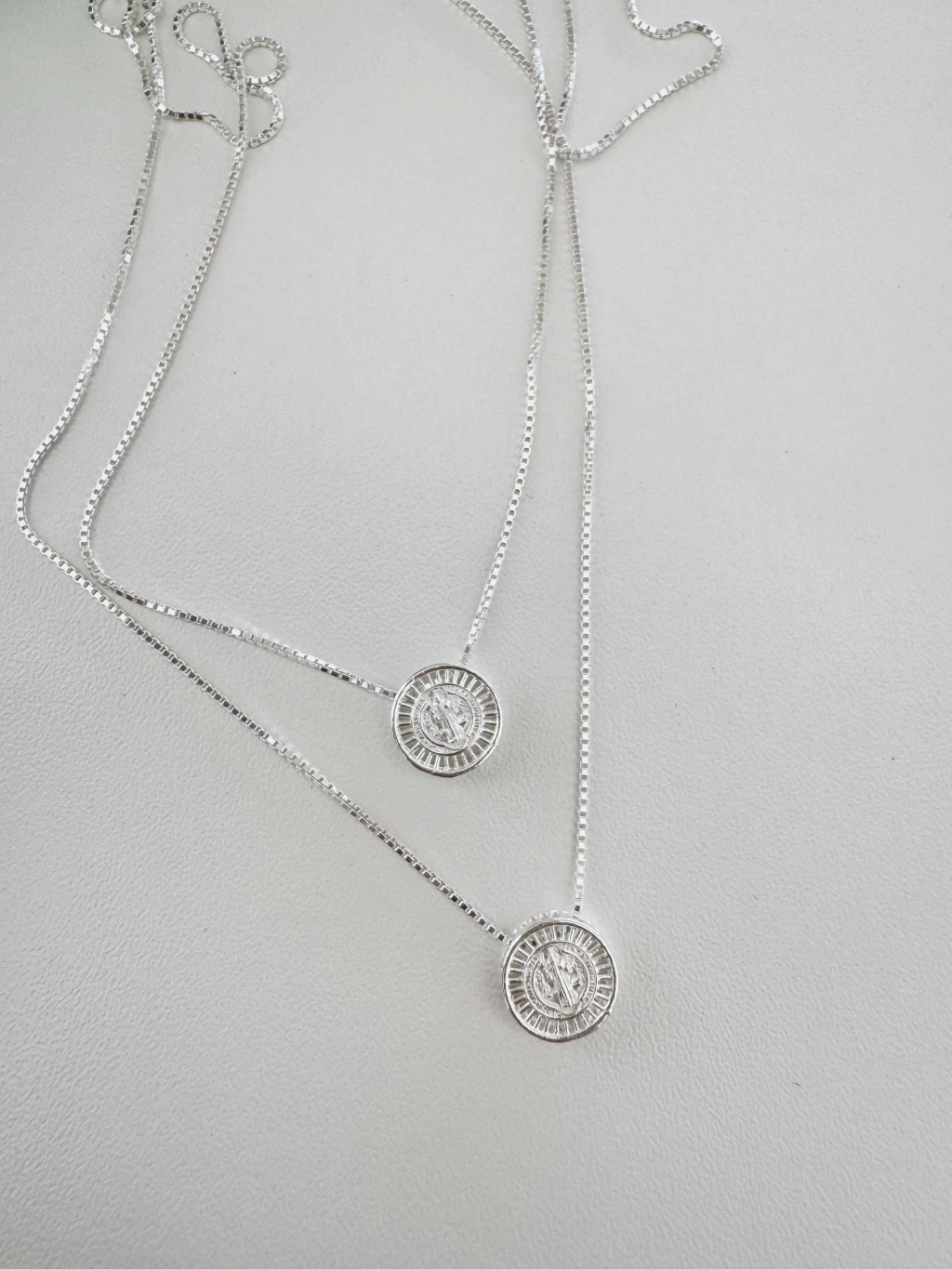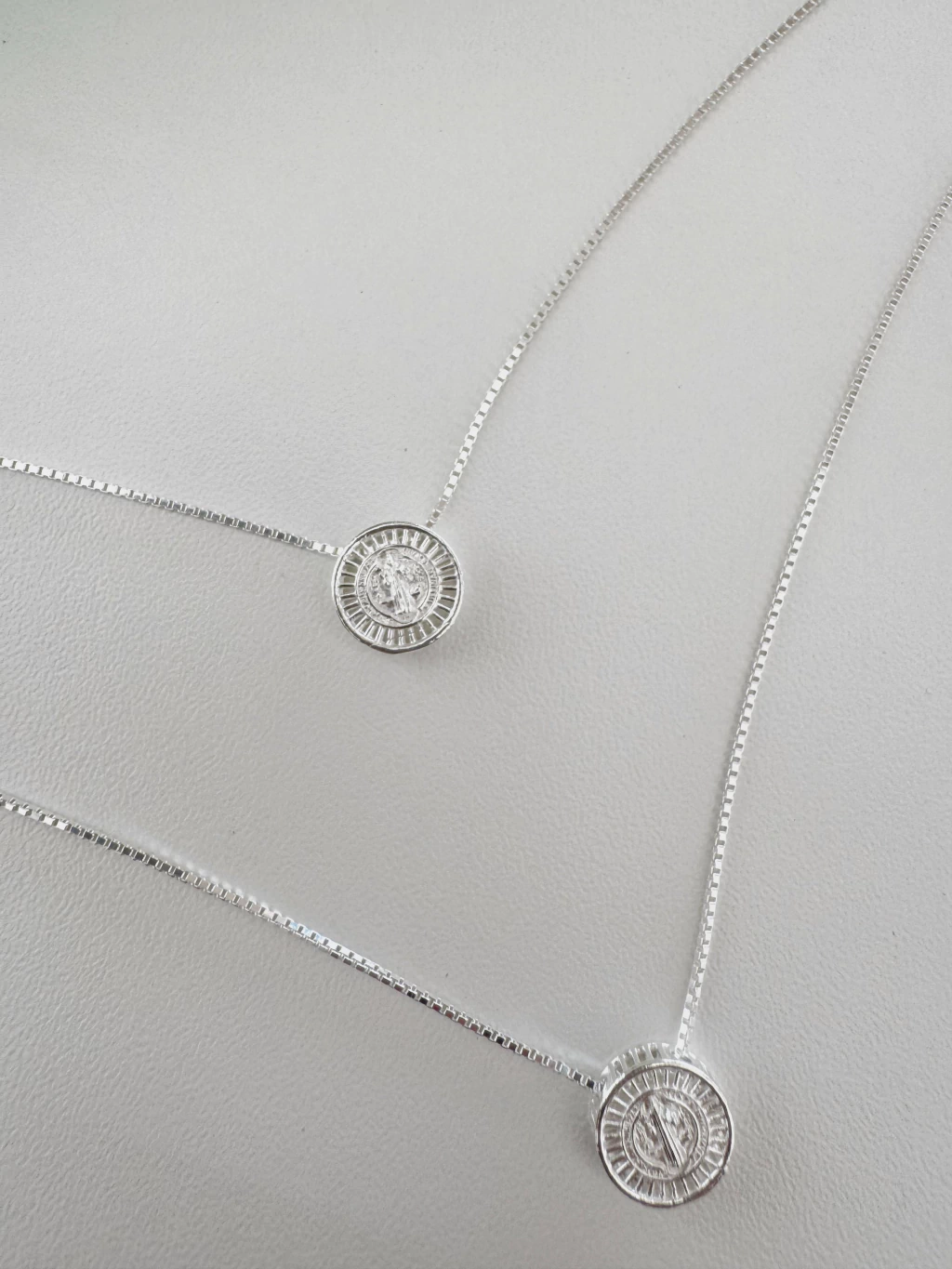 O escapulário de São Bento em Prata 925 é uma peça que une fé, proteção e estilo em um só acessório. Clássico e atemporal, ele carrega o símbolo da cruz e a força da medalha de São Bento, sendo perfeito para quem busca um colar cheio de significado e que combina com qualquer ocasião.