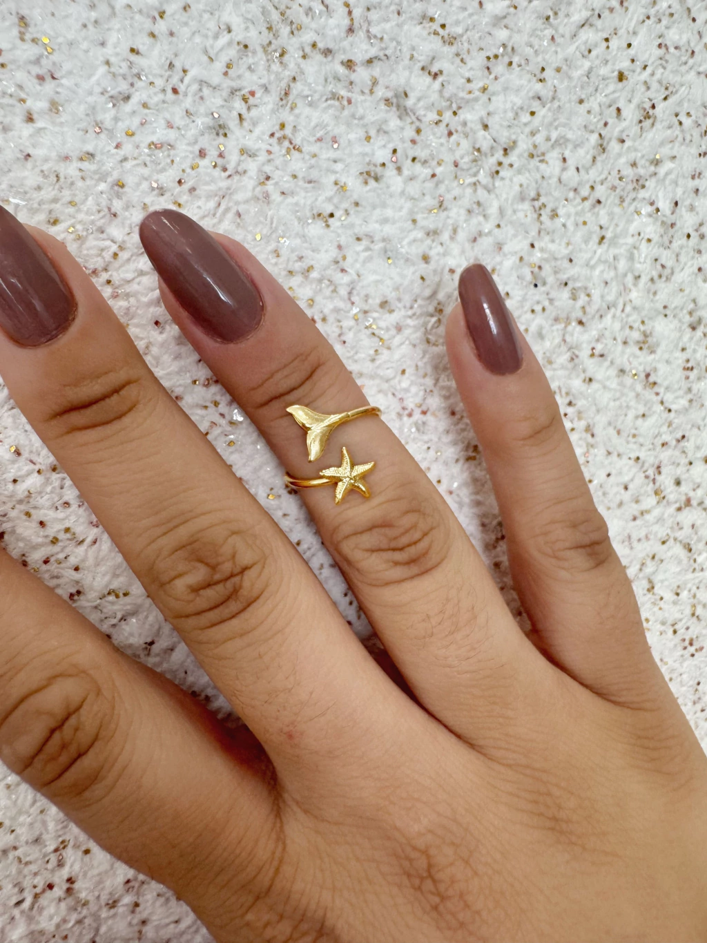 Falange Cauda de Sereia com Estrela do Mar - Banhado a Ouro