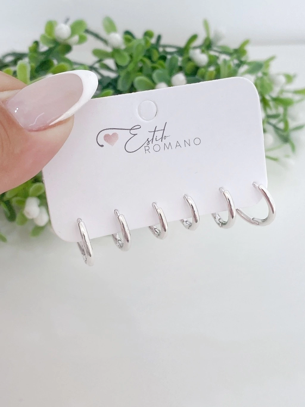 O Kit Argolinhas Lisas Minimalistas - Banhado a Prata é ideal para quem ama um estilo clean e elegante! Banhadas a ródio branco, essas argolas apresentam um design simples e sofisticado que combina com qualquer look. Versáteis e modernas, são perfeitas para usar sozinhas ou em combinação, criando diferentes composições cheias de charme.