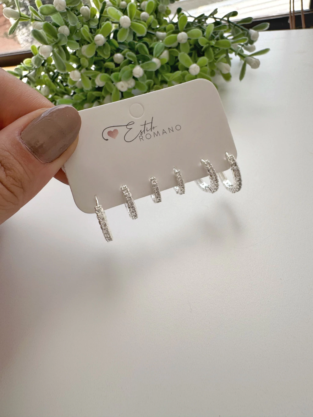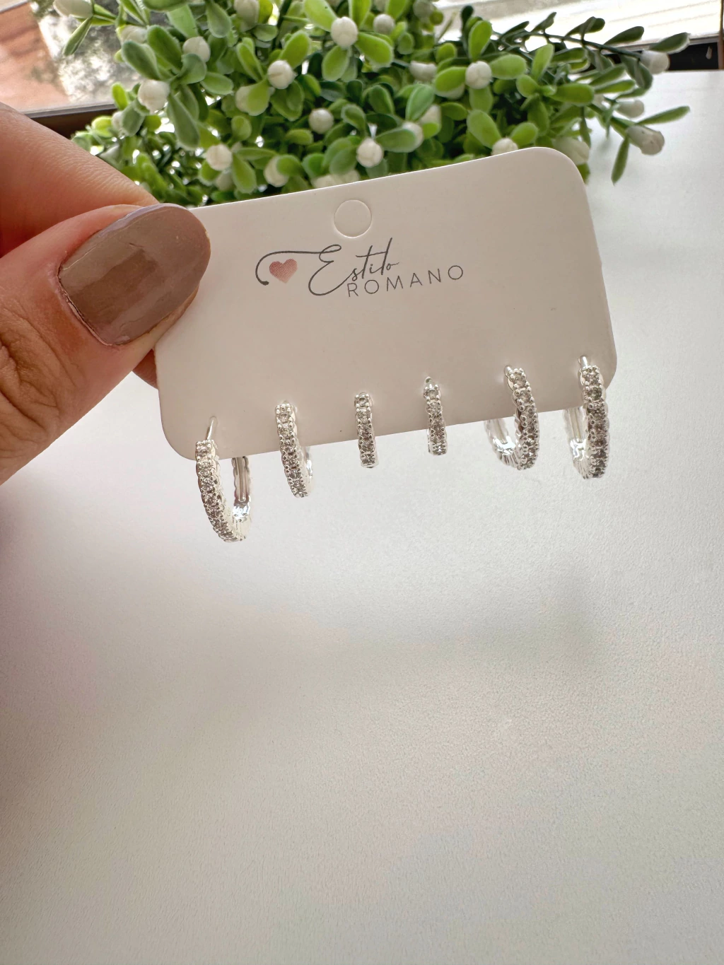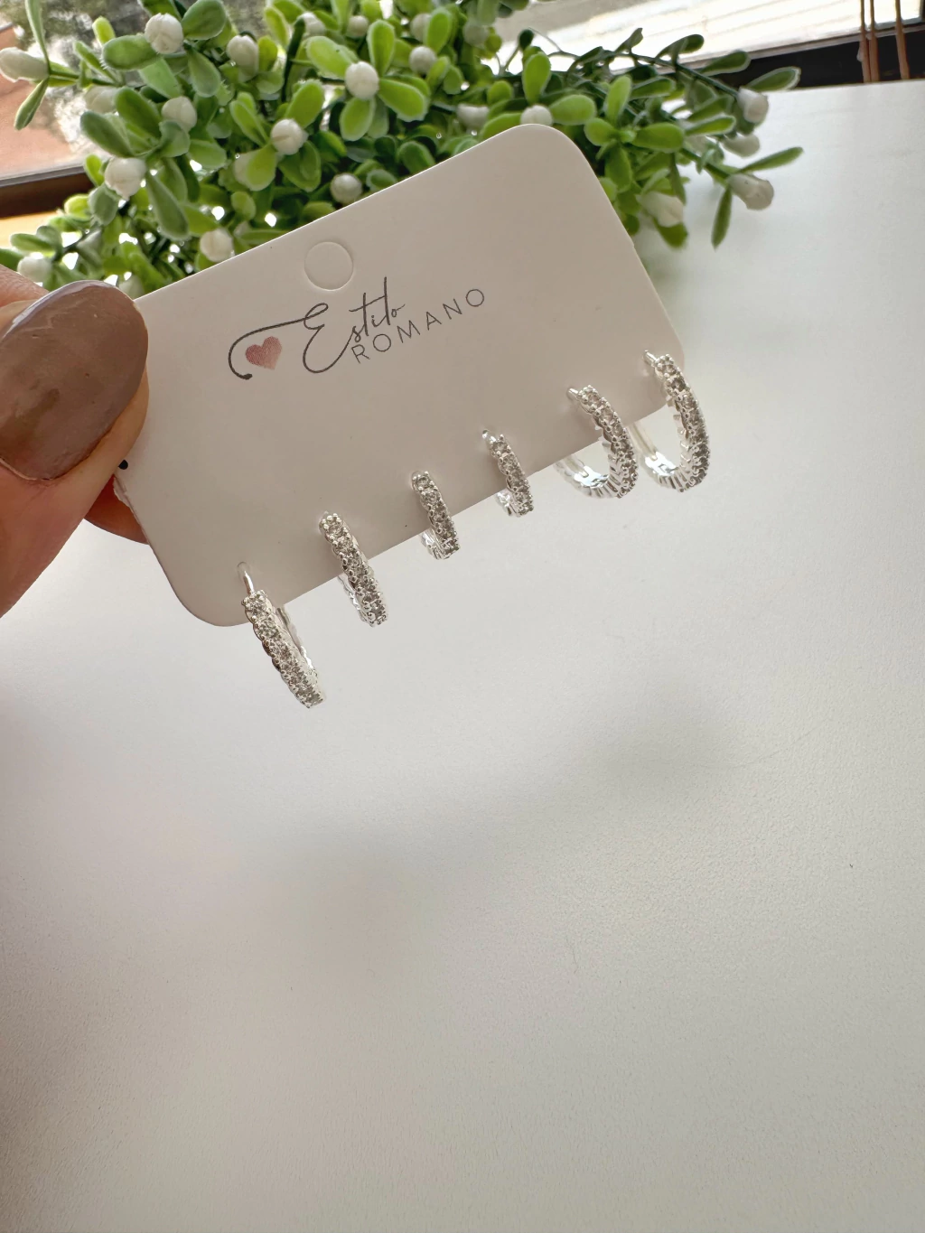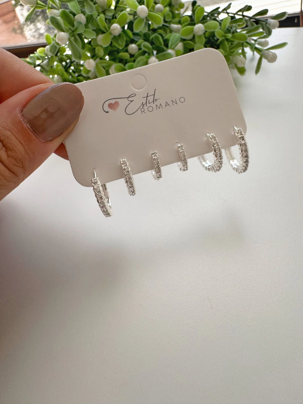 Kit Trio Argolinhas Cravejadas - Banhado a Prata