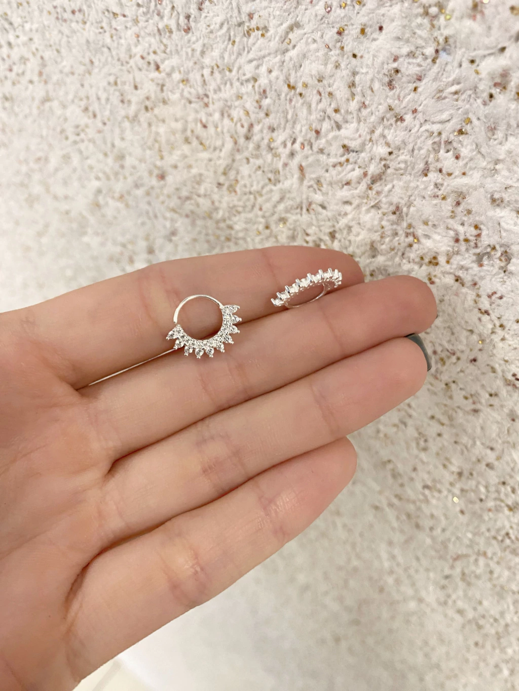 Piercing Argolinha Torção Cravejado Floral - Prata 925