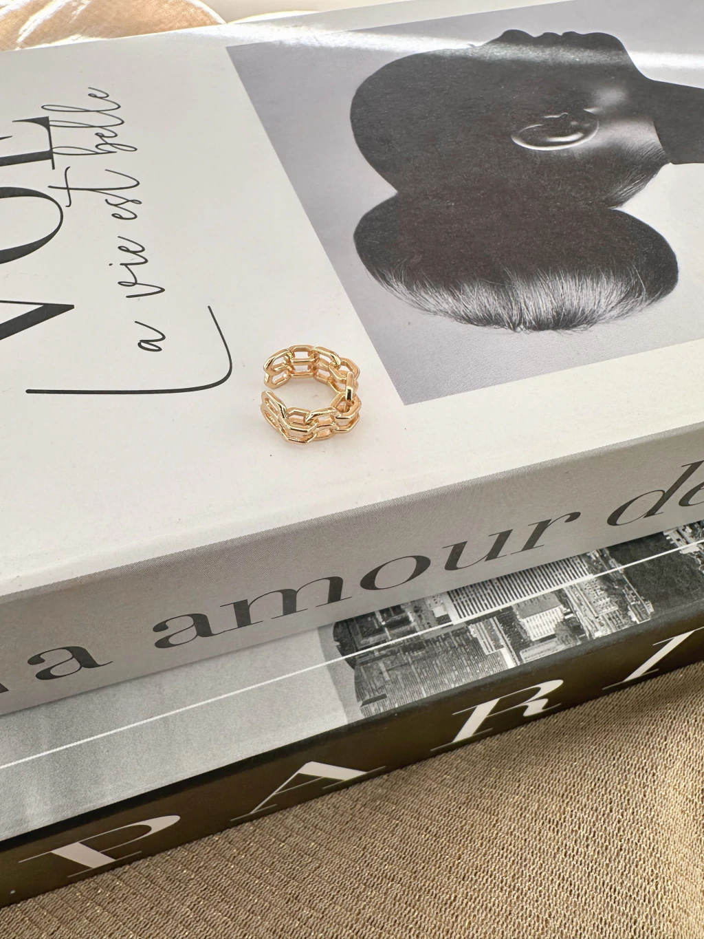 É a escolha ideal pra quem quer ousar no visual com um toque moderno, sem precisar de perfuração! Seu design de elos delicados traz um ar contemporâneo e descolado, perfeito pra compor produções com atitude e estilo. O banho em ouro garante brilho intenso e acabamento sofisticado, enquanto o formato anatômico permite um encaixe confortável e seguro na orelha. Combine com brincos pequenos ou ear cuffs e crie composições cheias de personalidade!