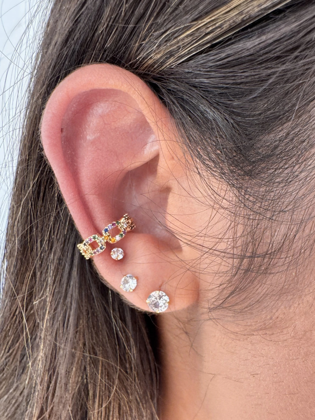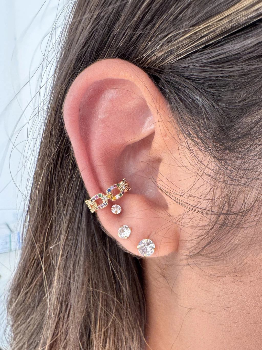 Piercing Fake Elos Cravejados Coloridos - Banhado a Ouro