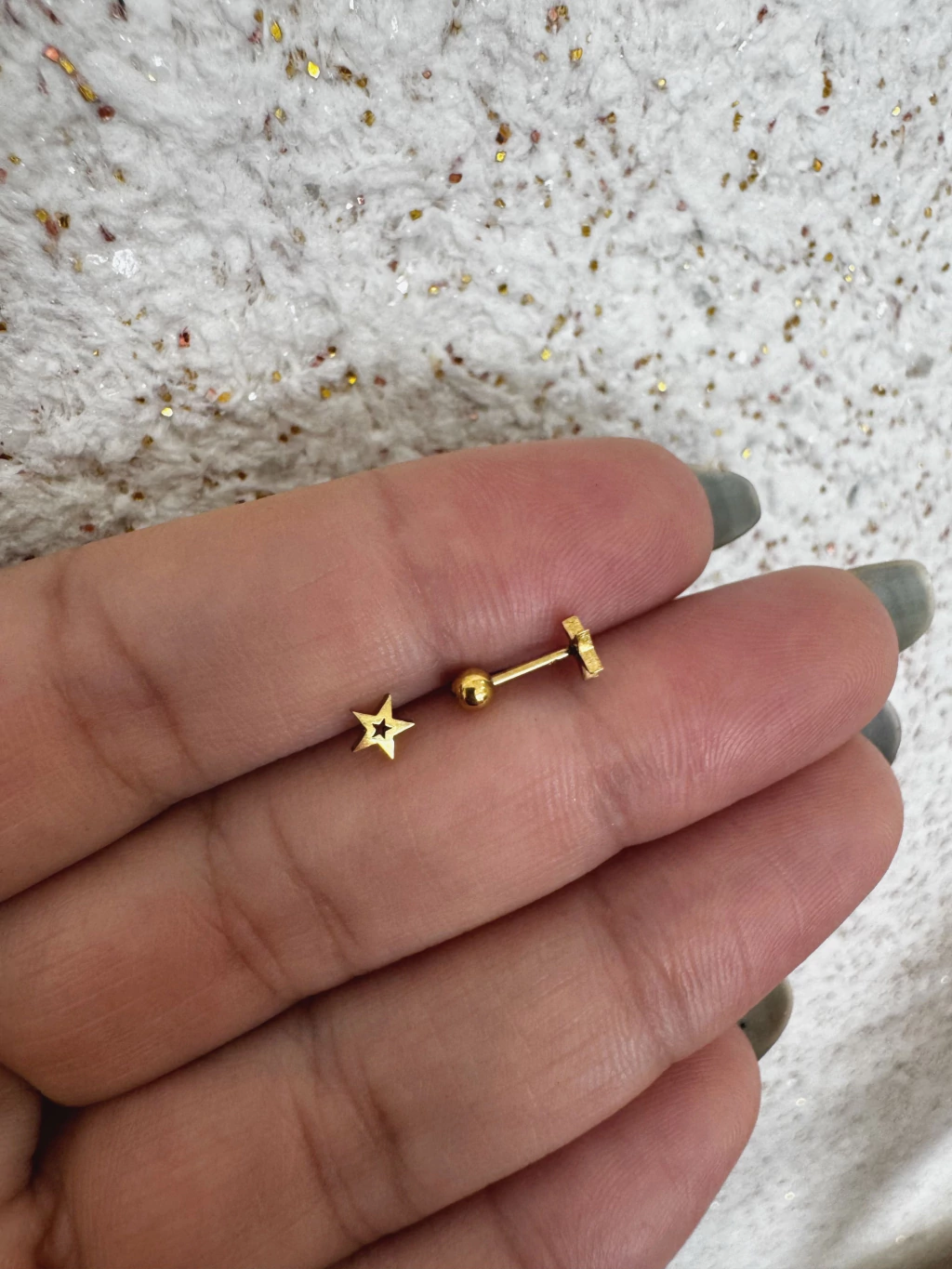 Charmoso e discreto, o Piercing Reto Estrela em aço banhado a ouro é o toque perfeito para quem busca um acessório minimalista, mas com personalidade. Seu design em formato de estrela adiciona um brilho delicado, ideal para qualquer estilo e ocasião.