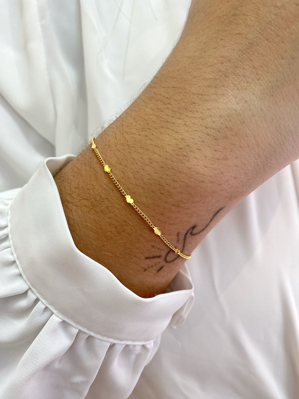 Com design lindo e inovador, a nossa Pulseira Corações traz toda a delicadeza e contraste que você precisa em uma só peça. Perfeita para compor looks mais básicos e ocasiões mais leves.