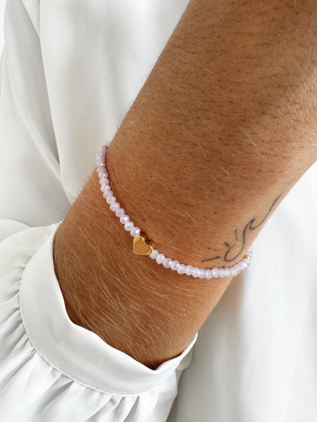 Pulseira Cristais Naturais Lilás e Coração Banhado a Ouro