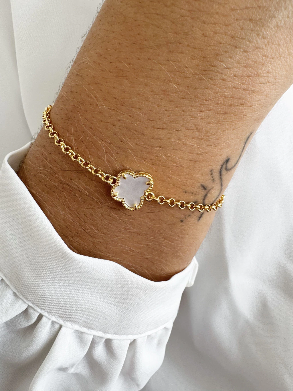 Pulseira Elo Português Borboleta Branca Banhada a Ouro