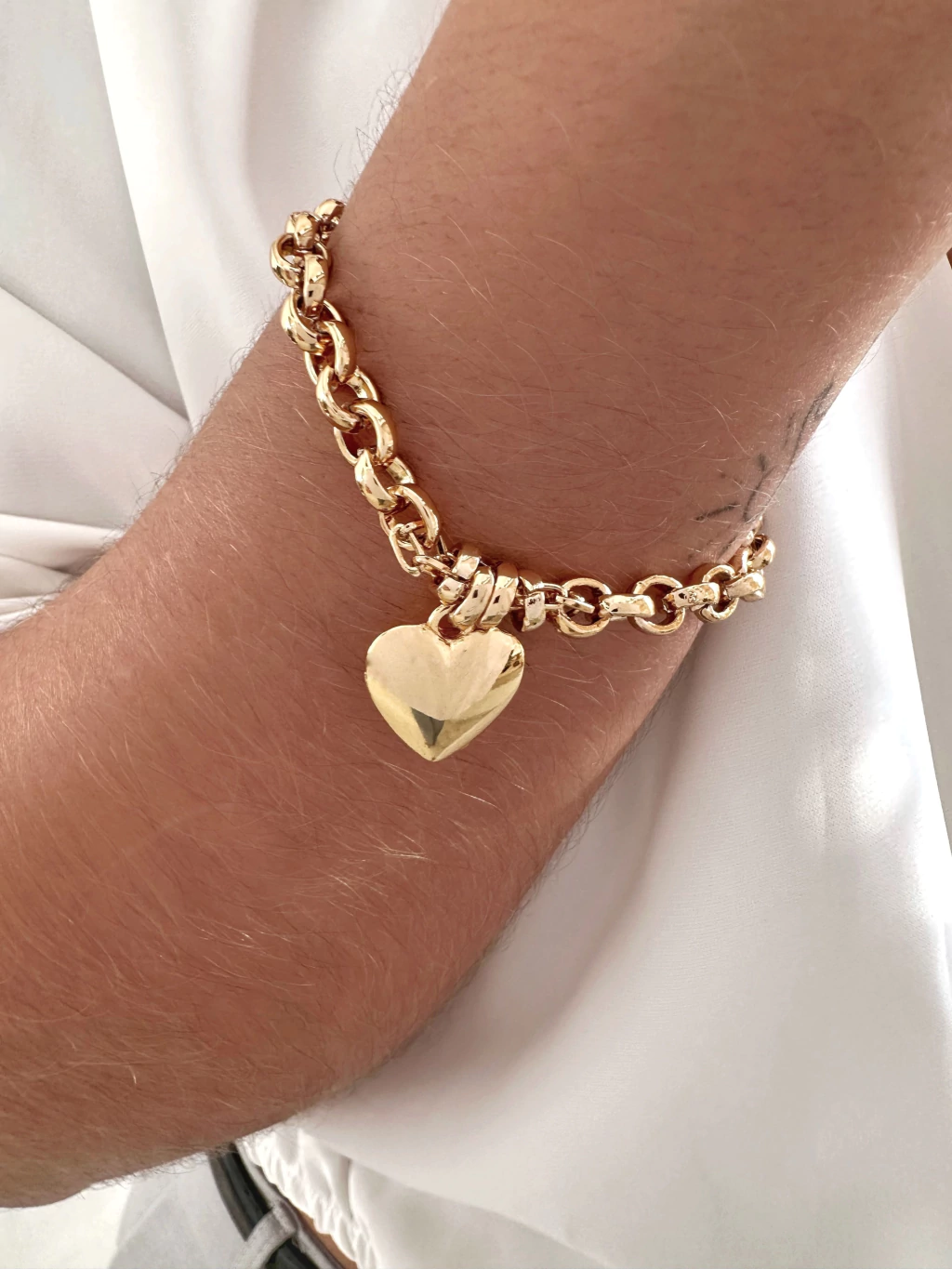 Pulseira Elo Português com Coração – Banhado a Ouro