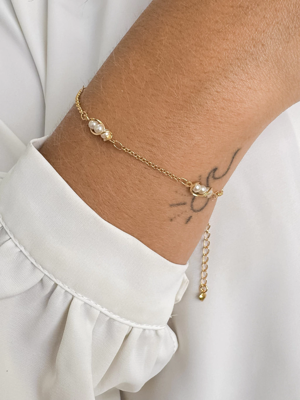 Pulseira Elos com Pérolas - Banhado a Ouro