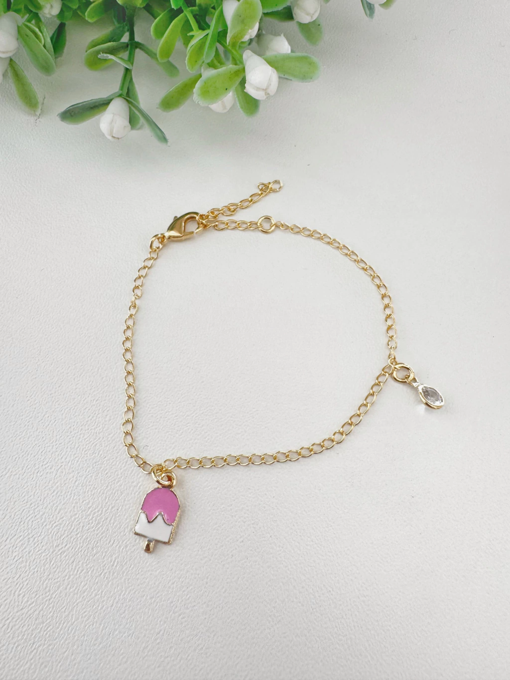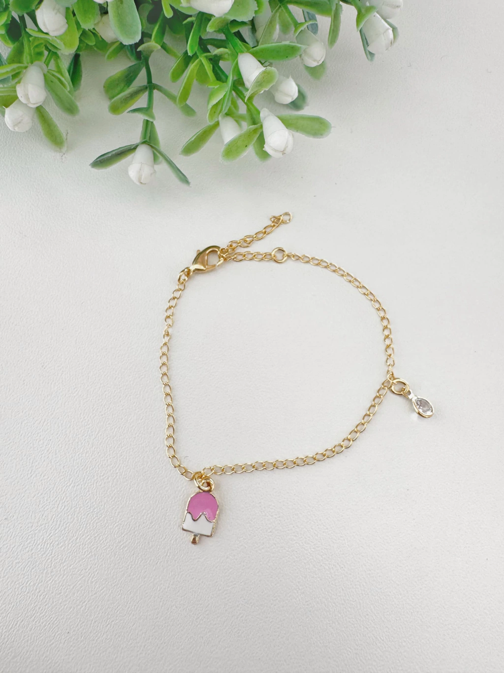 Pulseira Infantil Picolé Rosa com Ponto de Luz - Banhado a Ouro