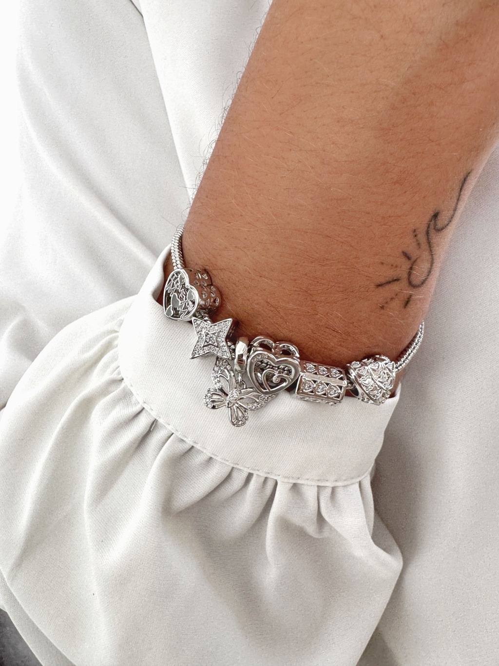 Pulseira Maleável com Berloques - Banhado a Ródio Branco