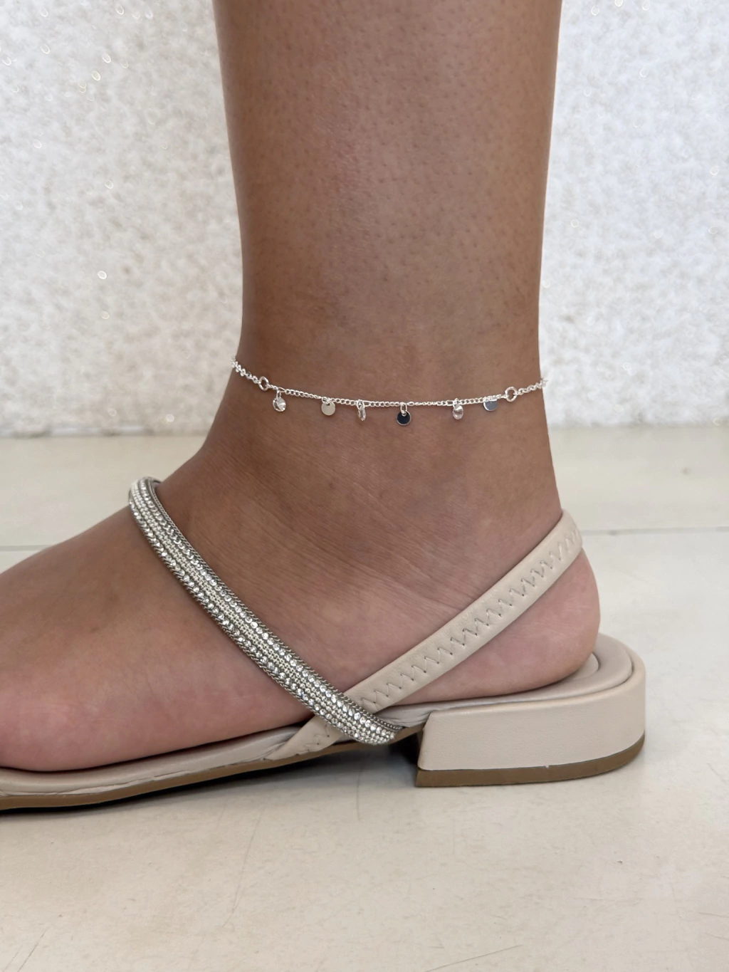 Tornozeleira Chapinhas e Ponto de Luz – Banhado a Prata