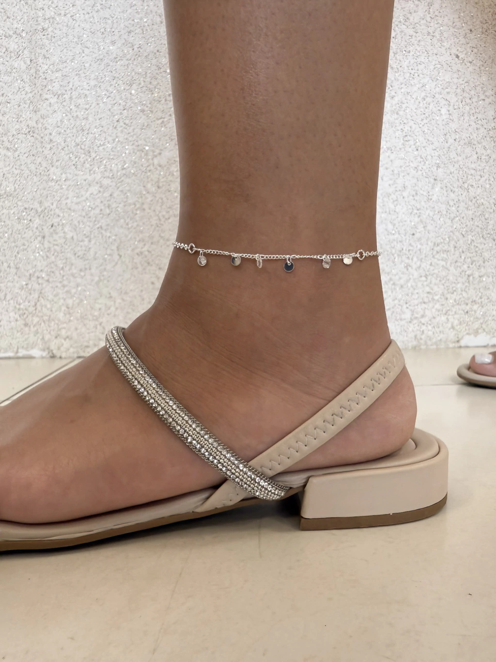Sutil, moderna e com um toque de brilho na medida certa. A Tornozeleira Chapinhas e Ponto de Luz é daquelas peças que trazem leveza ao visual, com detalhes que fazem toda a diferença. As pequenas chapinhas refletem a luz com movimento, enquanto o ponto de luz central garante um charme delicado e atemporal.