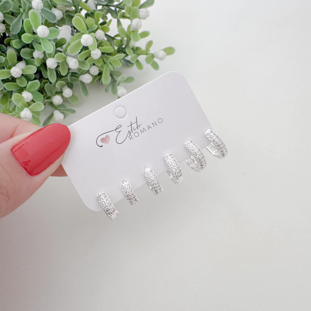 O Trio Argolinha Cravejada - Banhado a Prata é um acessório elegante e sofisticado, ideal para quem busca um acessório versátil que combina com qualquer ocasião. Seu design foi cuidadosamente desenvolvido para destacar o visual com brilho e delicadeza na medida certa. Perfeito para complementar tanto produções casuais quanto sofisticadas.
