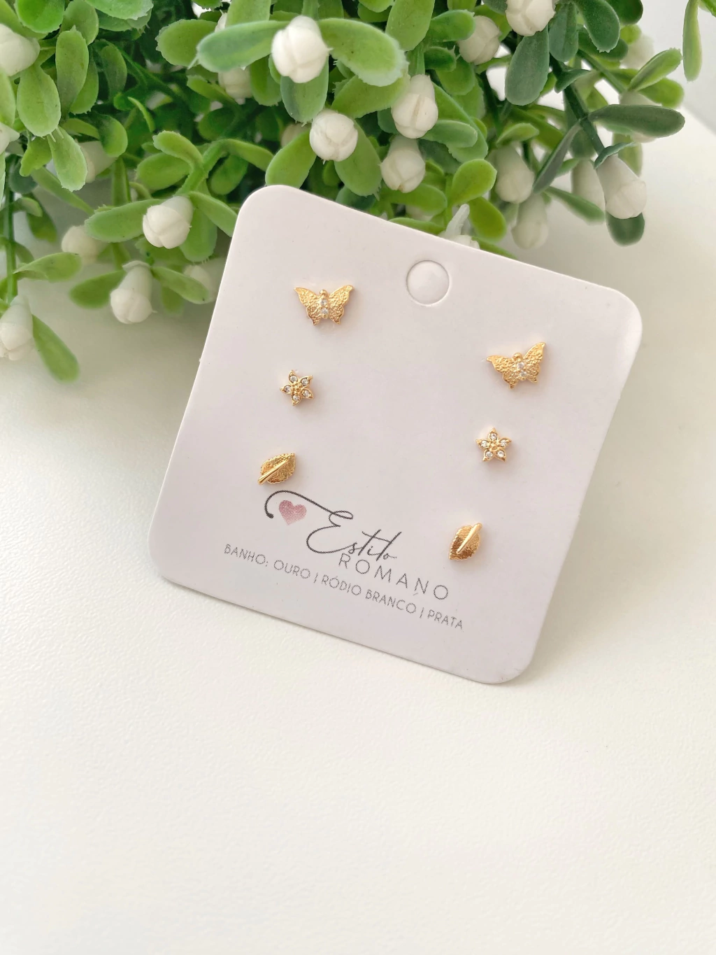 Esse trio de brincos é o toque de elegância e delicadeza que você precisa! Inspirado na primavera, cada brinco traz o frescor e a beleza da estação em designs encantadores. Perfeitos para combinar com qualquer look, esses brincos são cravejados com zircônias que adicionam um brilho especial e um toque de sofisticação. Ideal para usar no dia a dia ou em ocasiões especiais, esse trio é o complemento perfeito para quem ama acessórios delicados e refinados.